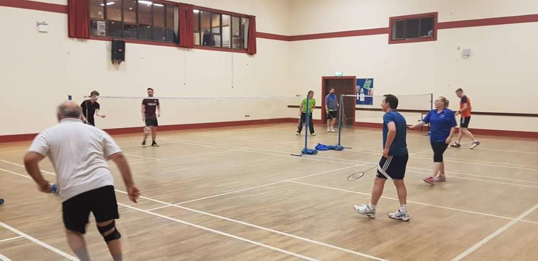 Roscrea Badminton Club, training each Monday night in Shinrone from 8pm to 10pm, new members always welcome from age 14 and over.